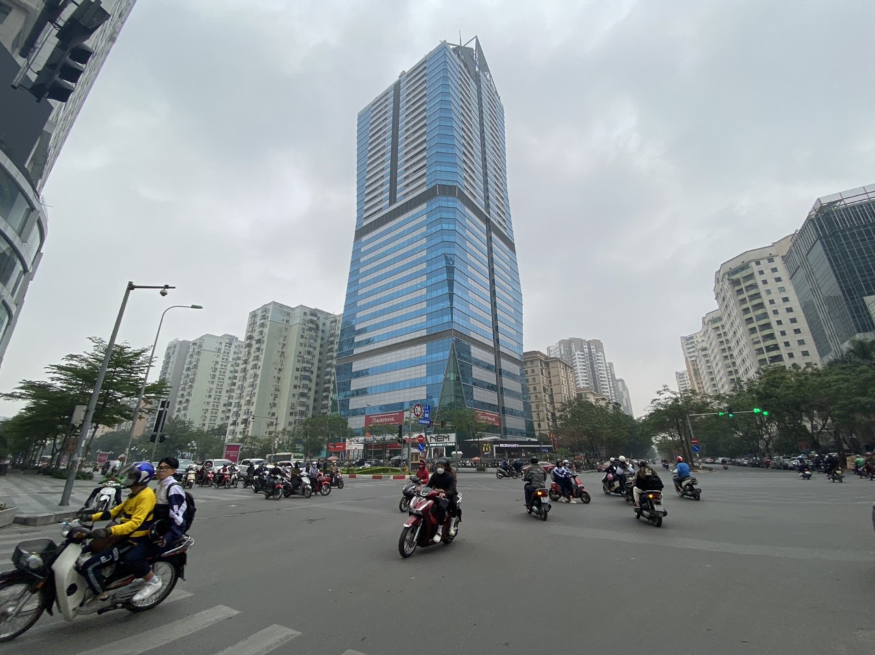 Tòa nhà Diamond Flower có vị trí đắc địa tại góc ngã 4 Lê Văn Lương - Hoàng Đạo Thúy, nút giao thông huyết mạch.